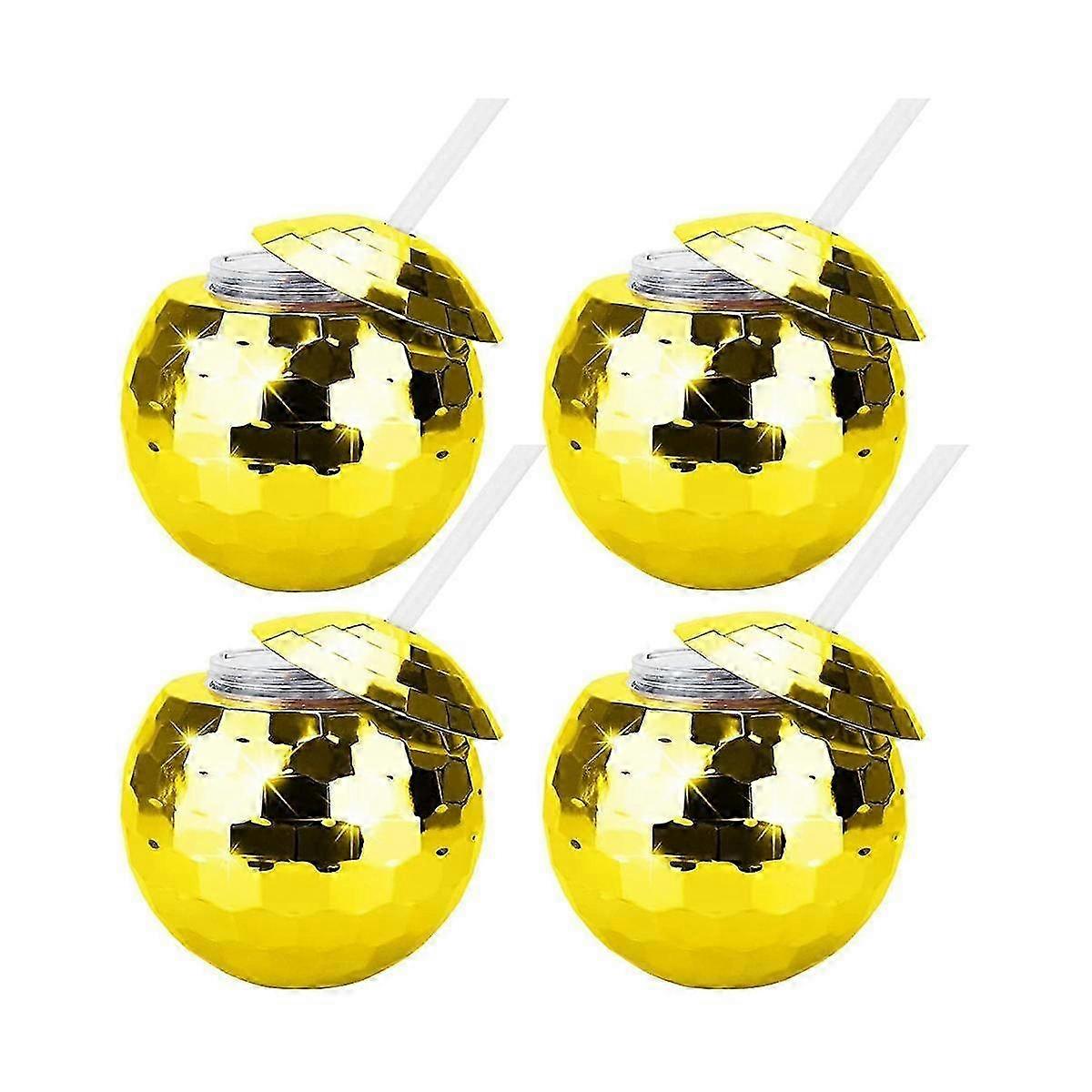 4PCS Disco Ball Cocktail Glasses with LED Light Up Straws, Party Bar Accessories, Wine Cups for Events