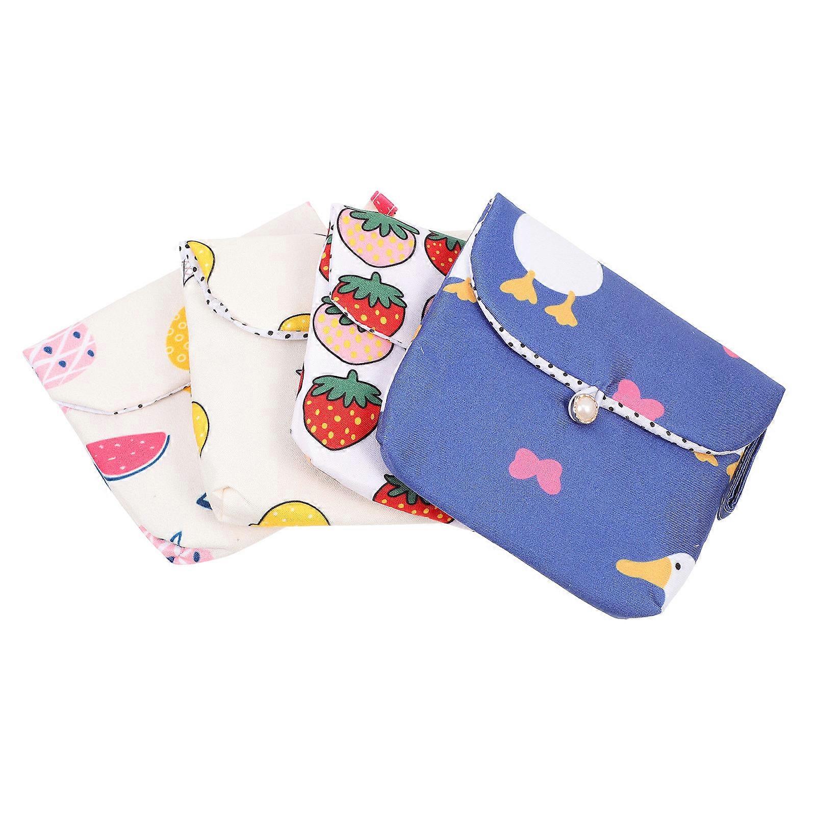 4Pcs Adorable Sanitary Napkin Storage Bags Travel Comprehensive Privacy Protection Assorted Color Fabric