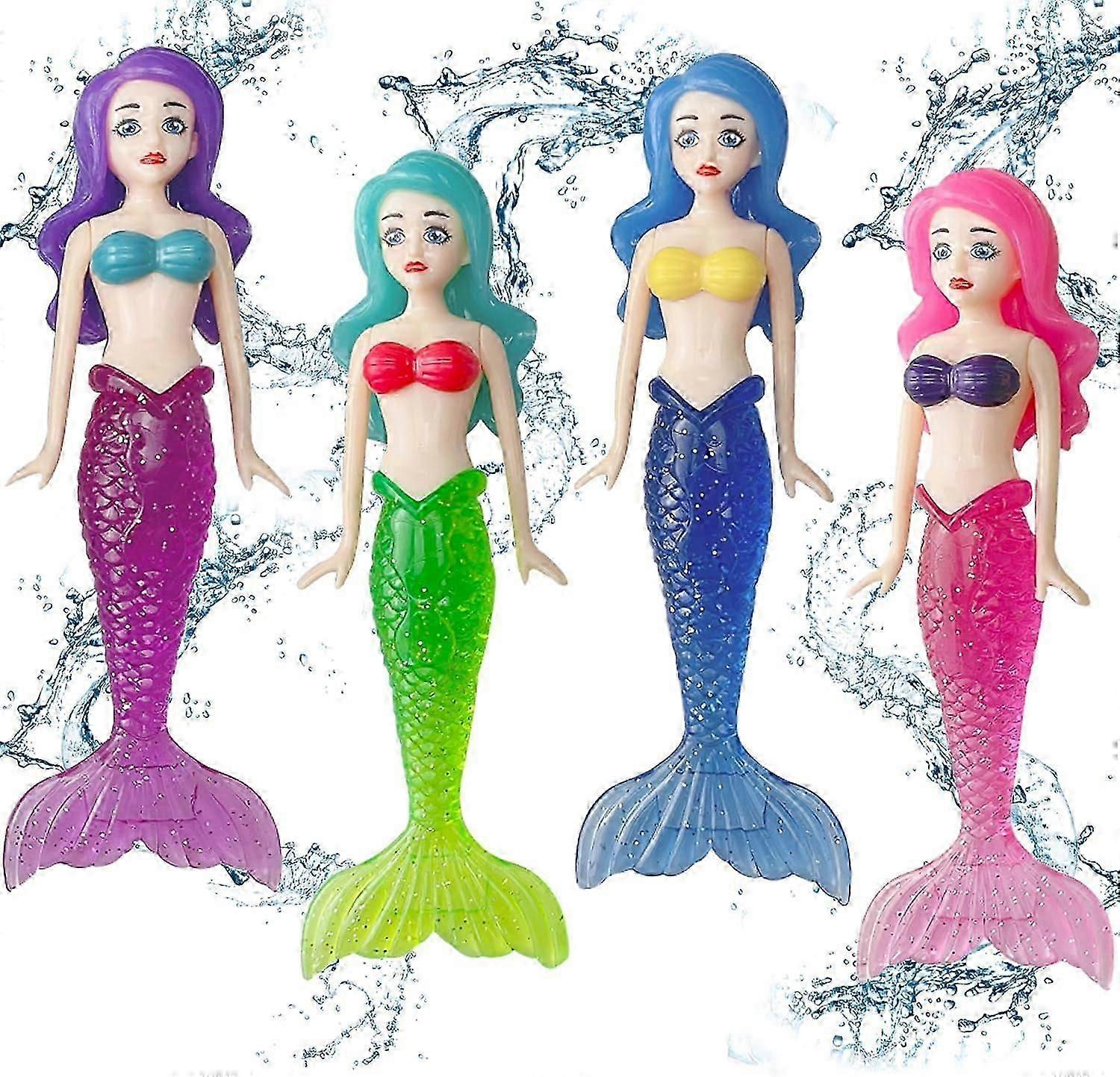 4 Pieces Mermaid Dive Toys with Sparkle Tails Diving Mermaid Underwater Training Pool Toys for Improve Swimming and Diving Skills