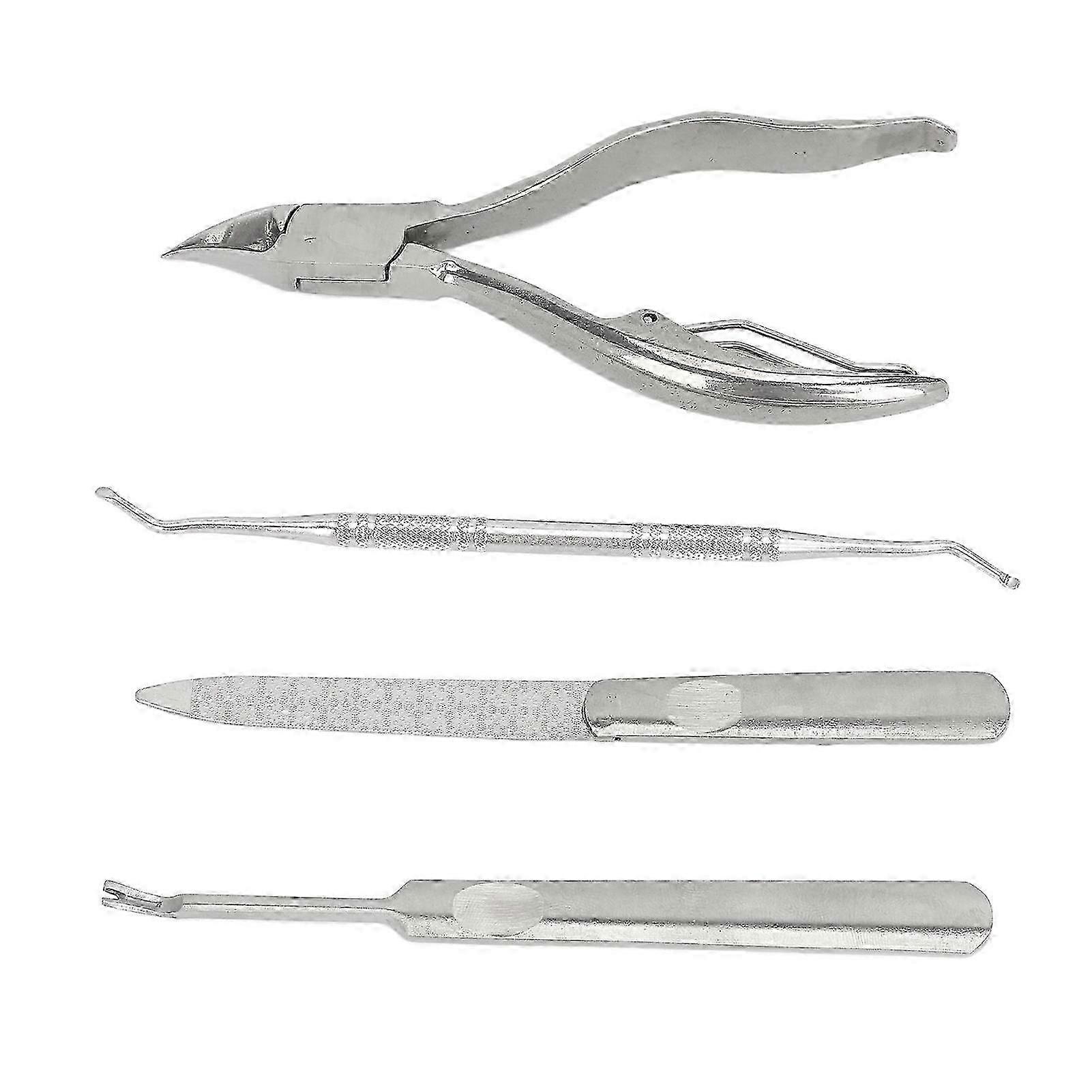 4pcs Cuticle Nipper Set with Nail Lifter Dead Skin Fork Nail File Professional Stainless Steel Manicure Tools