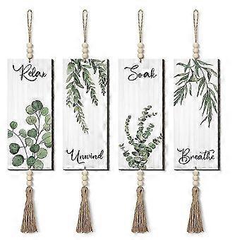 4 Pieces Boho Wall Decor for Bathroom 12 X 5 Inch Relax Soak Unwind Breathe Bathroom Signl Farmhous