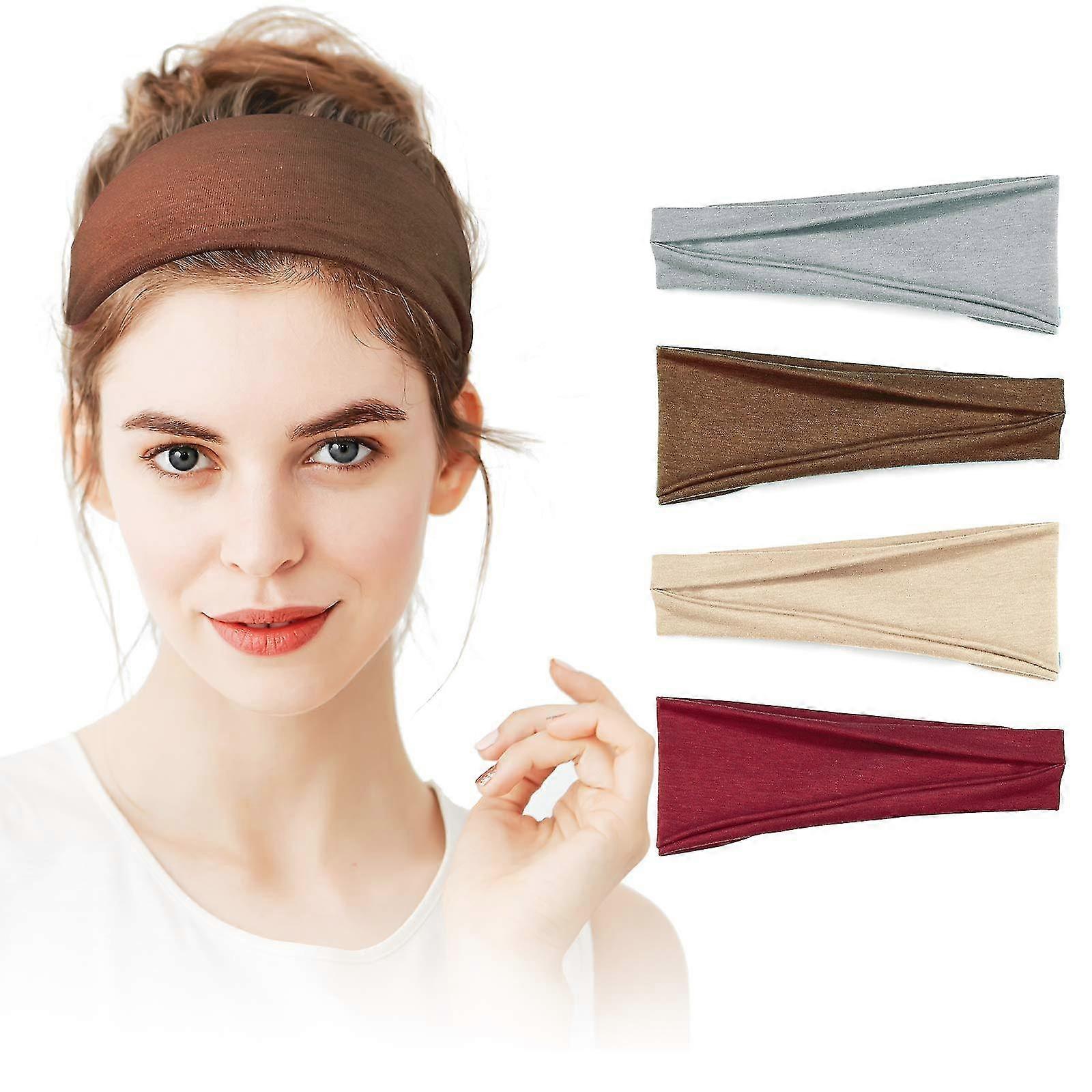 4pcs Workout Yoga Headband Non Slip Stretchy Cotton Headband Sweat Head Bands For Sports Running Fitness