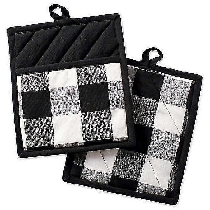 About size: the size of the plaid potholder is about 7.5 x 7.5 inches/ 19 x 19 cm, which is large enough to hold items and protect the desk in large area; With black and white plaid design, it looks classic and elegant, it is stain resistant and easy to clean What you get: the package includes 4 pieces pot holders in classic black and white, which can be applied with most kitchen decorations; Enough to meet your kitchen insulation task or daily replacement to protect your hands while handling hot pots, pans, dishes, casseroles and more Multi-functional potholders: the plaid potholder has a classic black and red plaid pattern, which is elegant and can be matched with various kitchen utensils in the kitchen; It can be served as heat insulation pad in the kitchen, coffee table, restaurant, etc., and can also be applied as decorations for most kitchen supplies Easy to hang: a small hanging loop is sewn on the black and red potholders, which is convenient for storing, and drying after washing; In addition, the tight binding edge prevents fraying, thereby extending the life of the pot pad Practical to use: the buffalo check pot holder with convenient pocket provides maximum coverage and prevents your hands from being burned; In addition, this heat insulation pad is suitable as a heat pad to protect the counter and table from hot cooking utensils