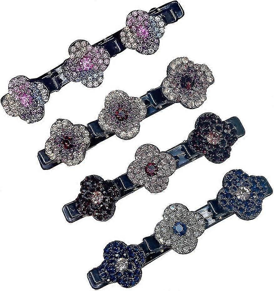 4pcs Three Flower Side Hair Clips, Sectioning Hair Clips, Satin Fabric Hair Bands, Hair Clips For Styling Sectioning, Ladies Sparkling Rhinest