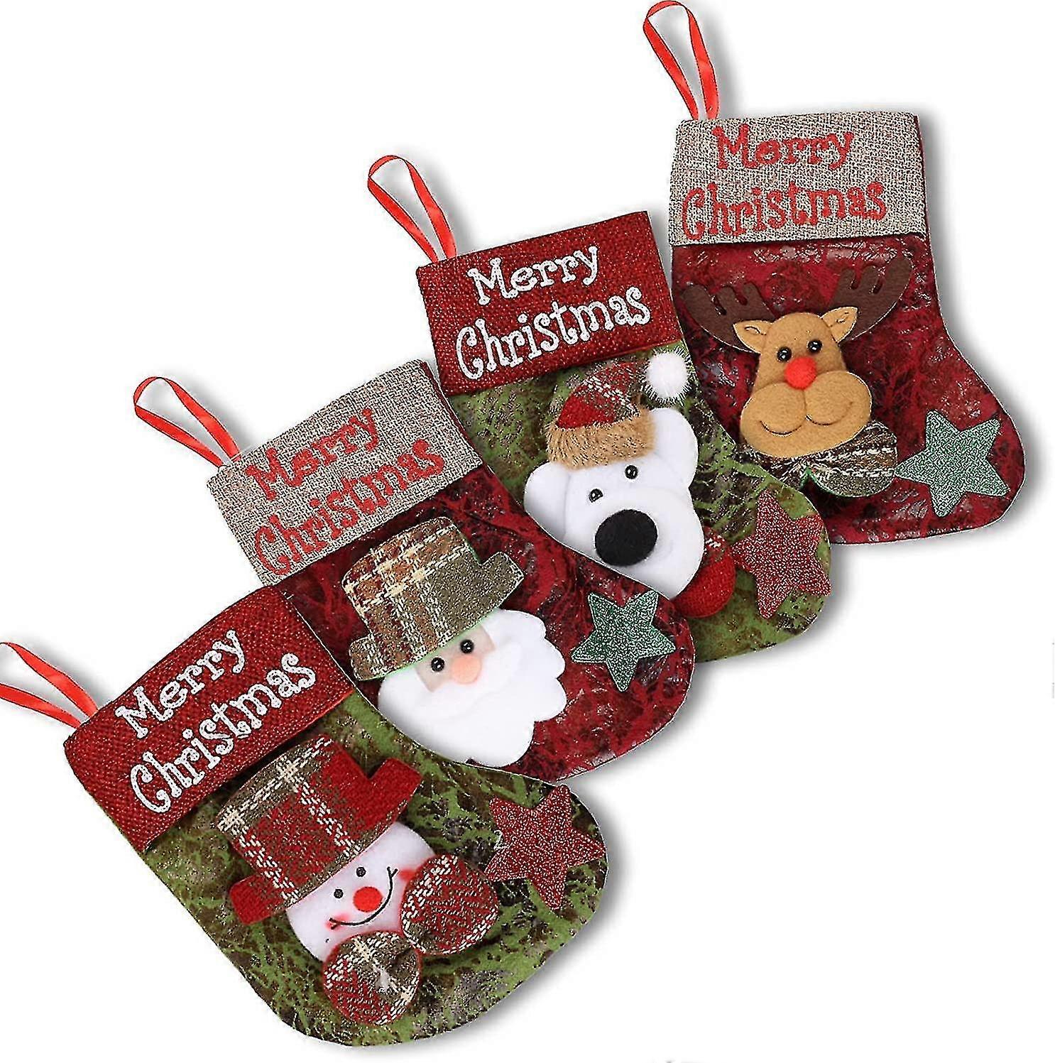 4pcs Christmas Socks Hanging 17*10cm Christmas Gift Bag Decorative Gift Bear Moose Santa Snowman Decorative Candy Bag - jjS