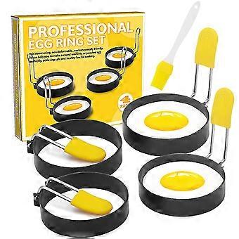 4pcs Egg Rings,stainless Steel Egg Cooking Ring With Anti-scald Handle,non-stick Round Shaper Mold With Oil Brush