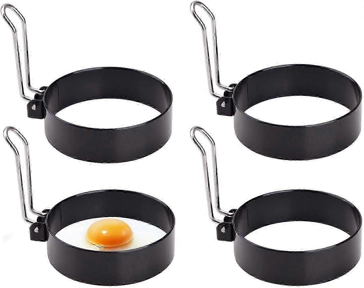 4 Pcs Stainless Steel Egg Rings, Fried Egg Molds, Non-Stick Egg Rings with Folding Handles for Pancakes Omelets