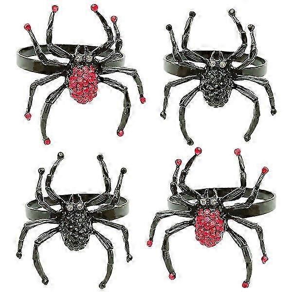 4Pcs Halloween Spider Napkin Rings (2 Black, 2 Red)