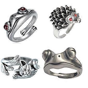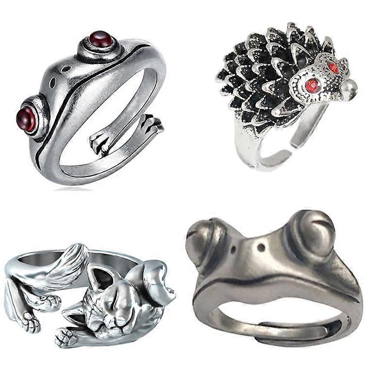 4 Pieces Frog Ring Silver Frog Open Rings Set for Women Girls Matching Frog Rings Adjustable Vintage Cute Animal Finger