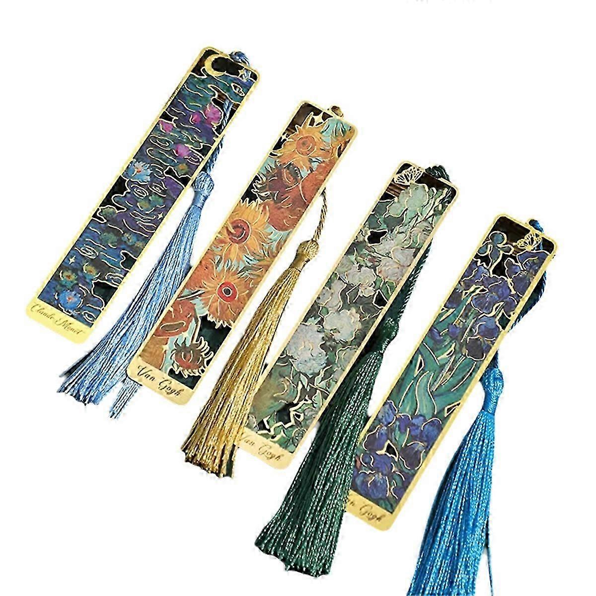 4 Pc Vintage Floral Metal Bookmark with Hollow Bronzing and Tassel, Stationery Gifts for Book Lovers