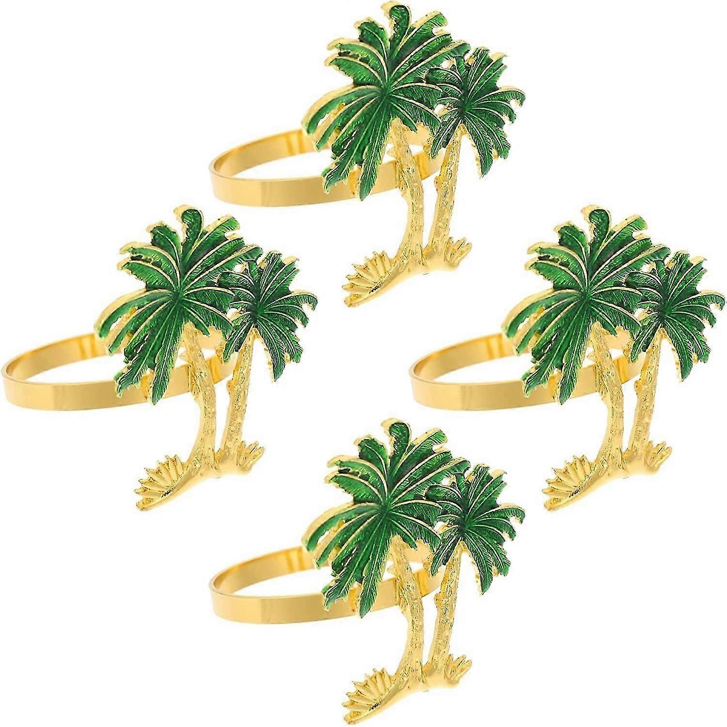 4 Pieces Napkin Rings Metal Napkin Holder Coconut Tree Buckle Holder DecorationSilver