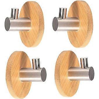 4pcs Self Adhesive Hooks Stainless Steel & Bamboo Bathrobe Hooks Wall Hooks Kitchen Towel Racks Coat Hooks Without Drilling Bathroom Kitchen Office Ho