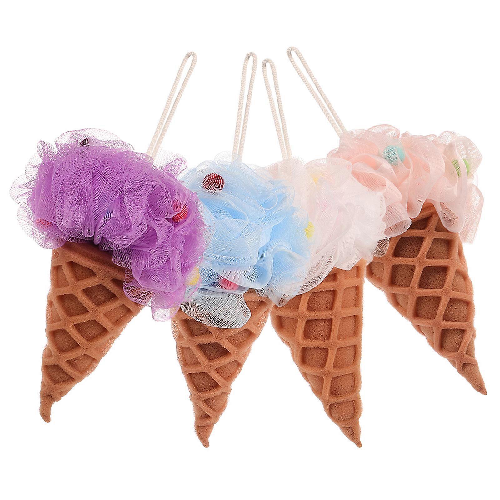 4pcs Adorable Ice Cream Bath Sponges Gentle Exfoliating Loofah Scrubbers for Shower, Durable & Fun Bathing Experience for Kids