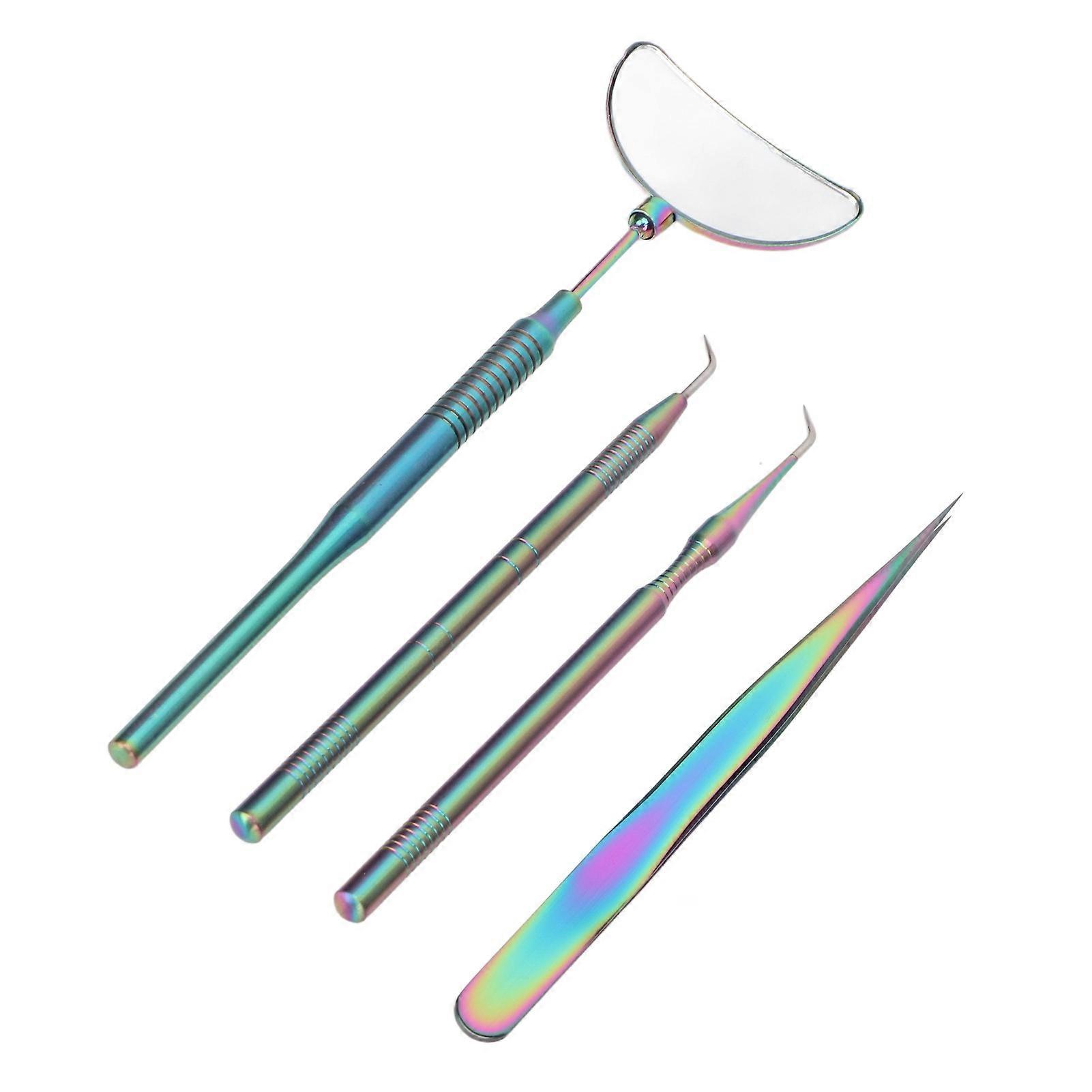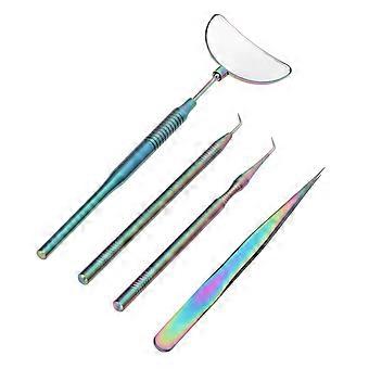 4PCS Eyelash Extension Tweezers Mirror Set Stainless Steel Universal Rotatable Anti Slip Handle Eyelash Tool Colorful