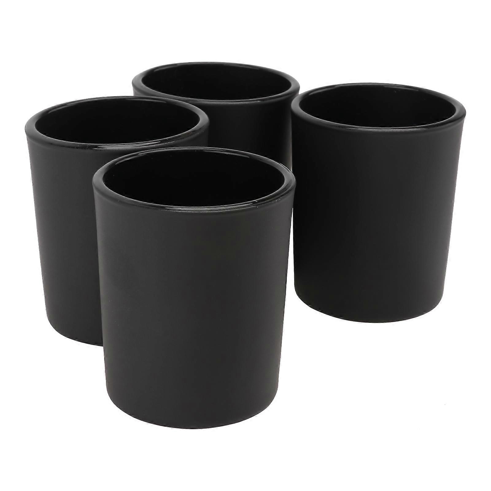 4pcs Romantic Glass Candle Cup Simple Table Candle Holder Black Glass Candle Holders Frosted Candle Cups For Home Decor (Black)