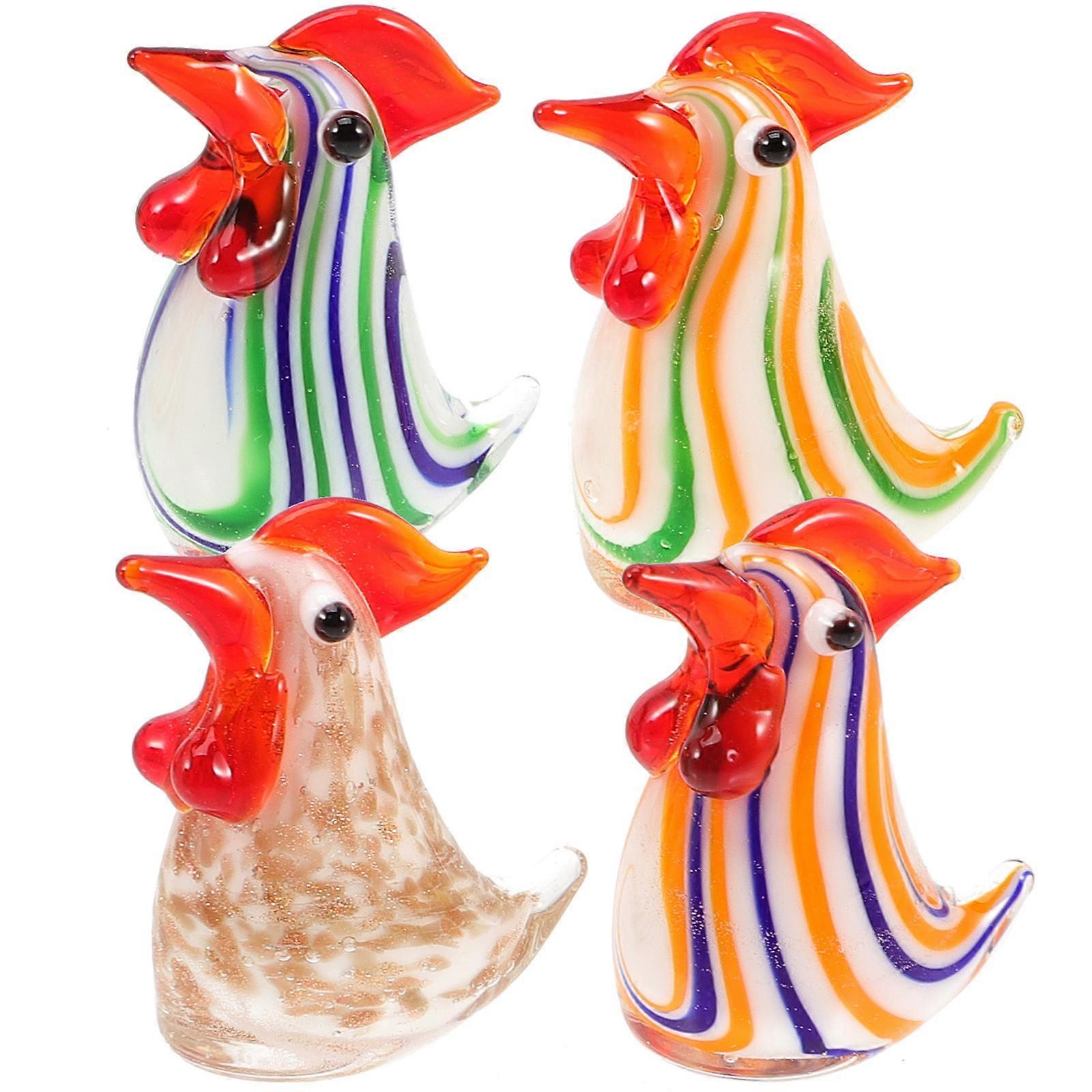 4pcs Glass Chicken Figurine Mini Statues Farm Animals Action Figures