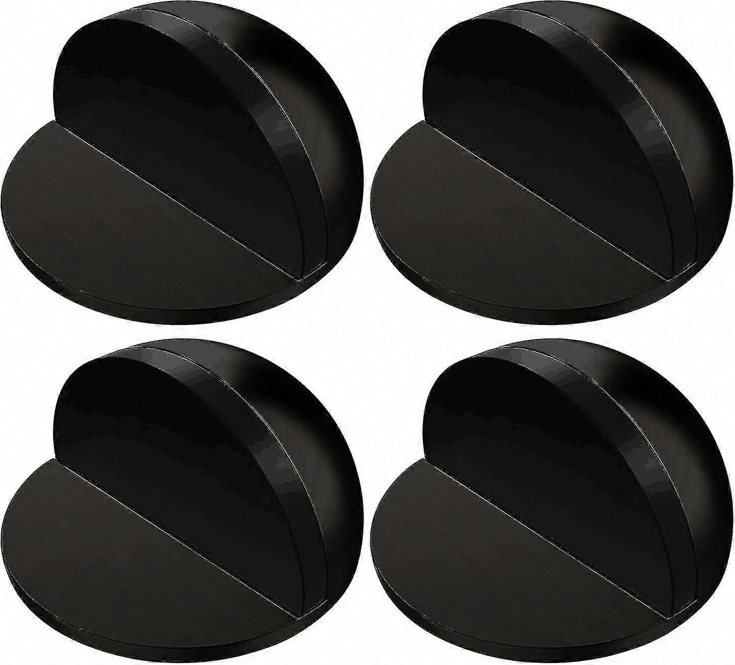 4Pcs Black Stainless Steel Floor Door Stopper with Adhesive Pads - No Drill Needed, Oval Design