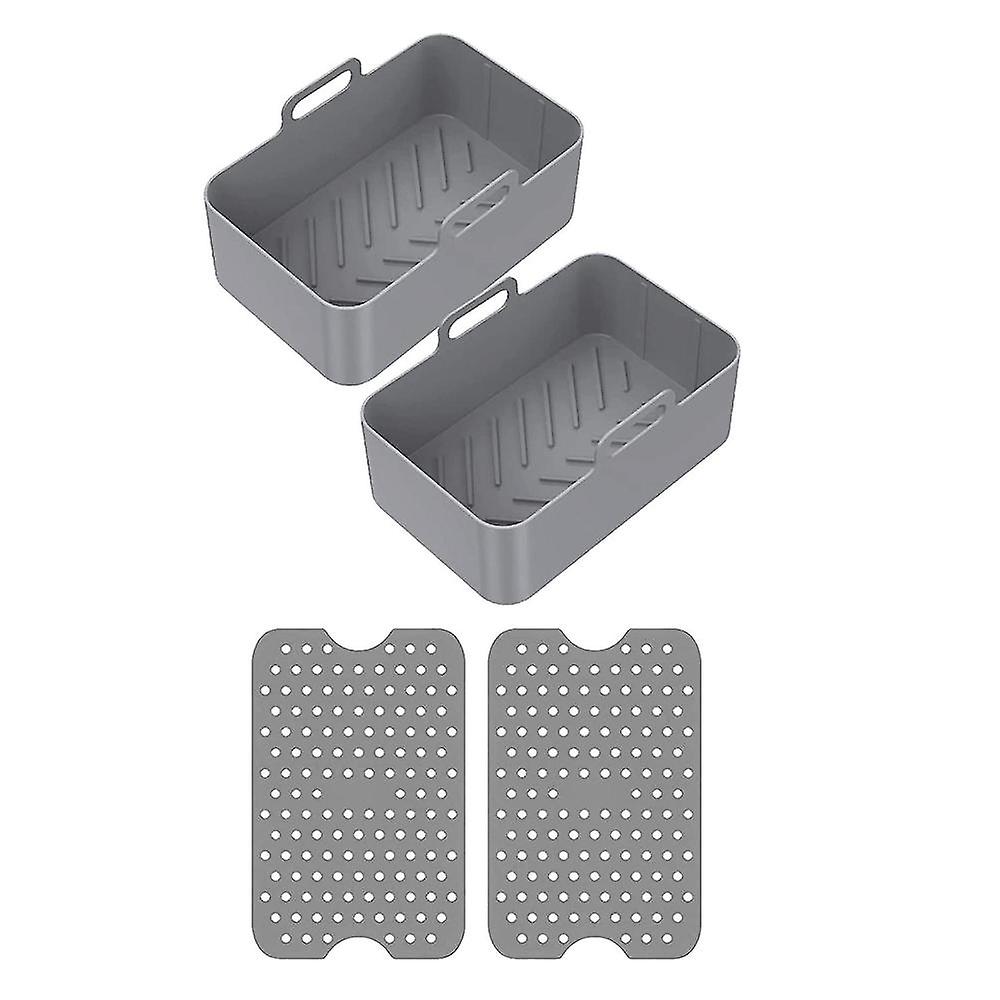 4 Pcs Silicone Pot Set For Dual Air Fryer, For Air Fryer Grey