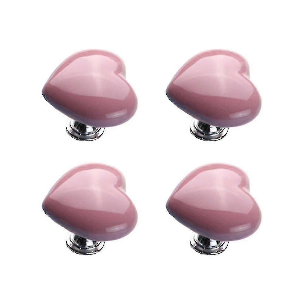 4pcs Heart Shape Knobs Ceramic Door Knobs Distinctive Pull Handle Furniture Door Knobs For Home Shop (pink)