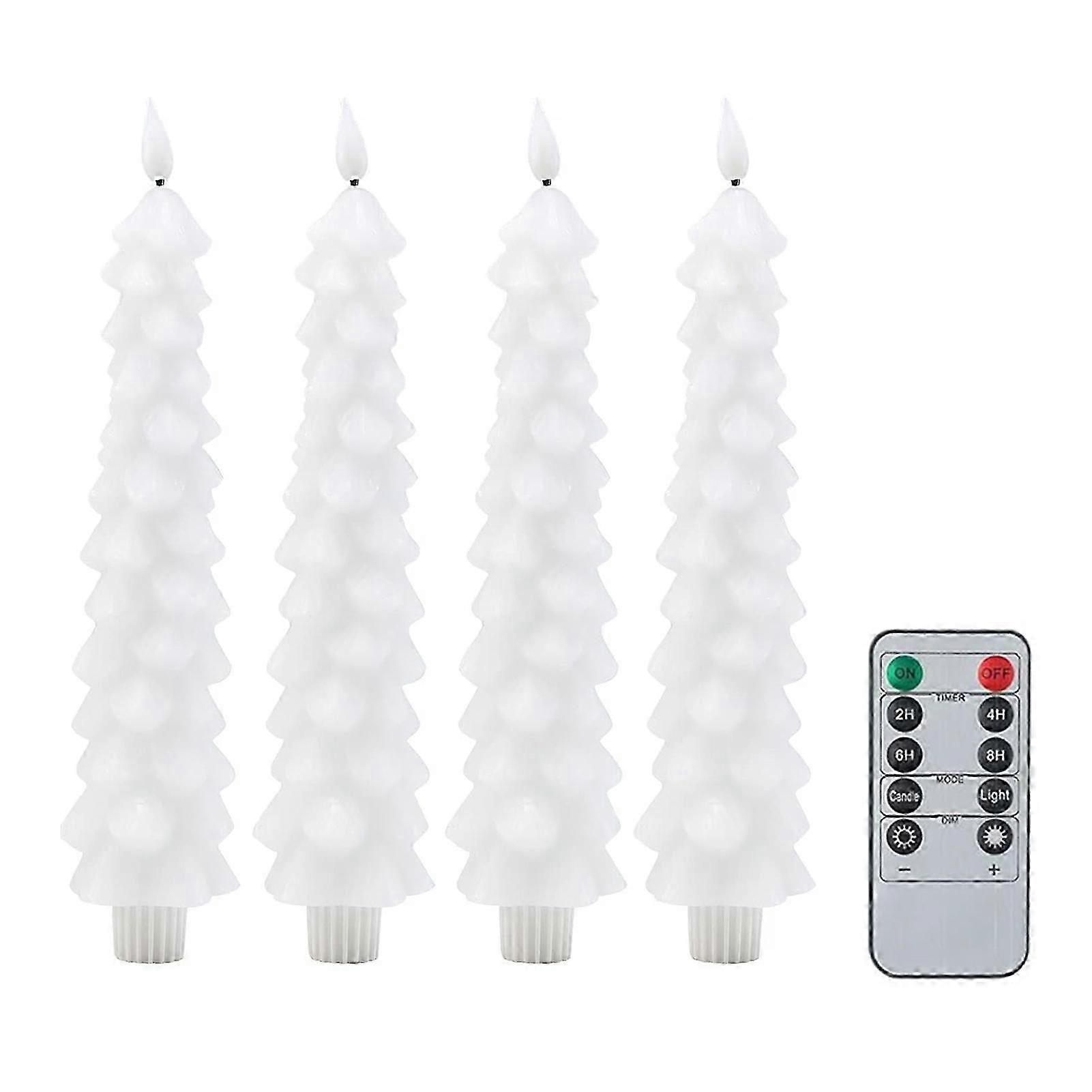 4 Pcs Flameless Candle Light LED Christmas Tree Shaped Candles with 3D Flame Wick Battery Operated Candles with Remote Timer for Home Decor Qinghai