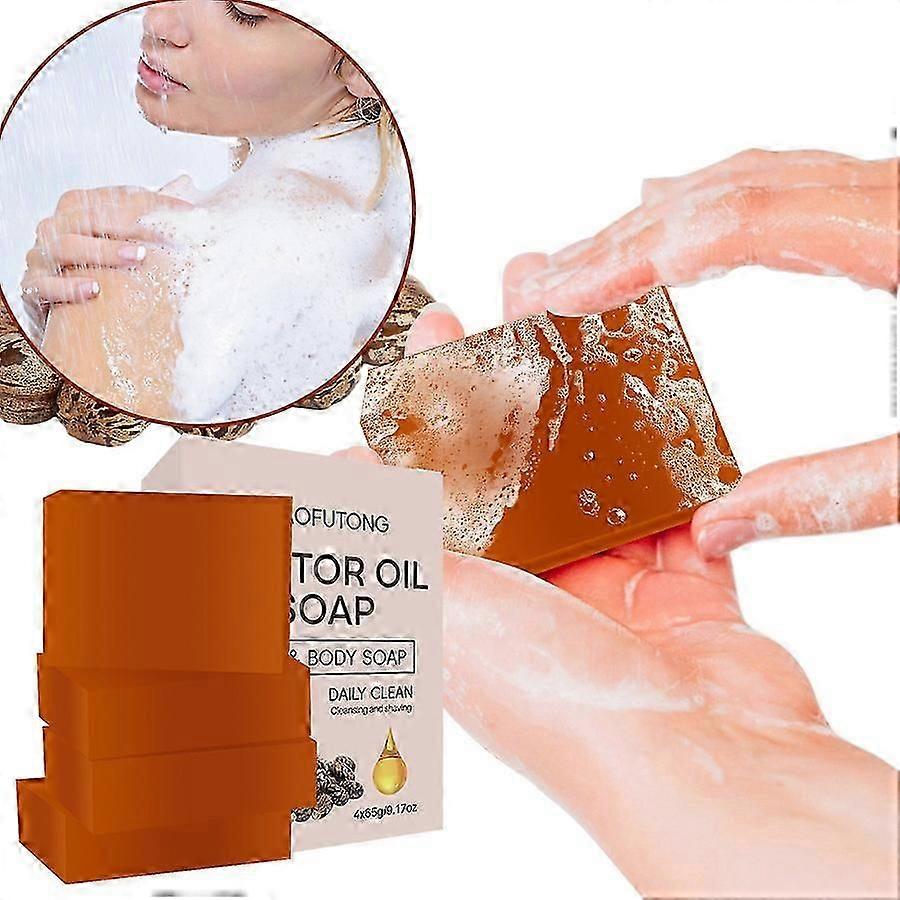 4PCS Castor Oil Organic Soap Bar for Face & Body - Hydrating, Nourishing & Cleansing Natural Handmade Soap for Moisturizing All Skin