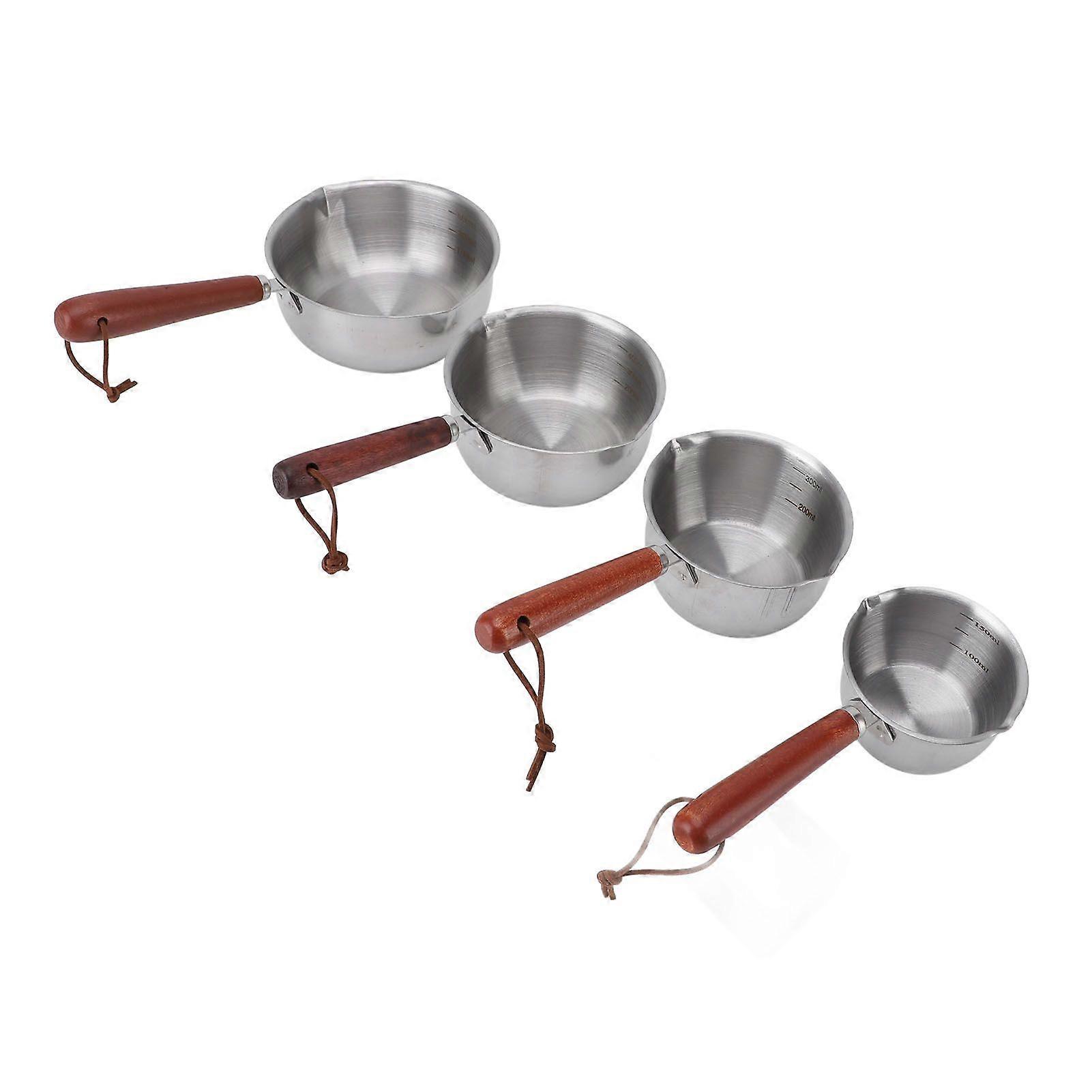 4pcs Pour Oil Small Pot Professional Stainless Steel Small Sauce Pot with Wooden Handle for Kitchen Cooking
