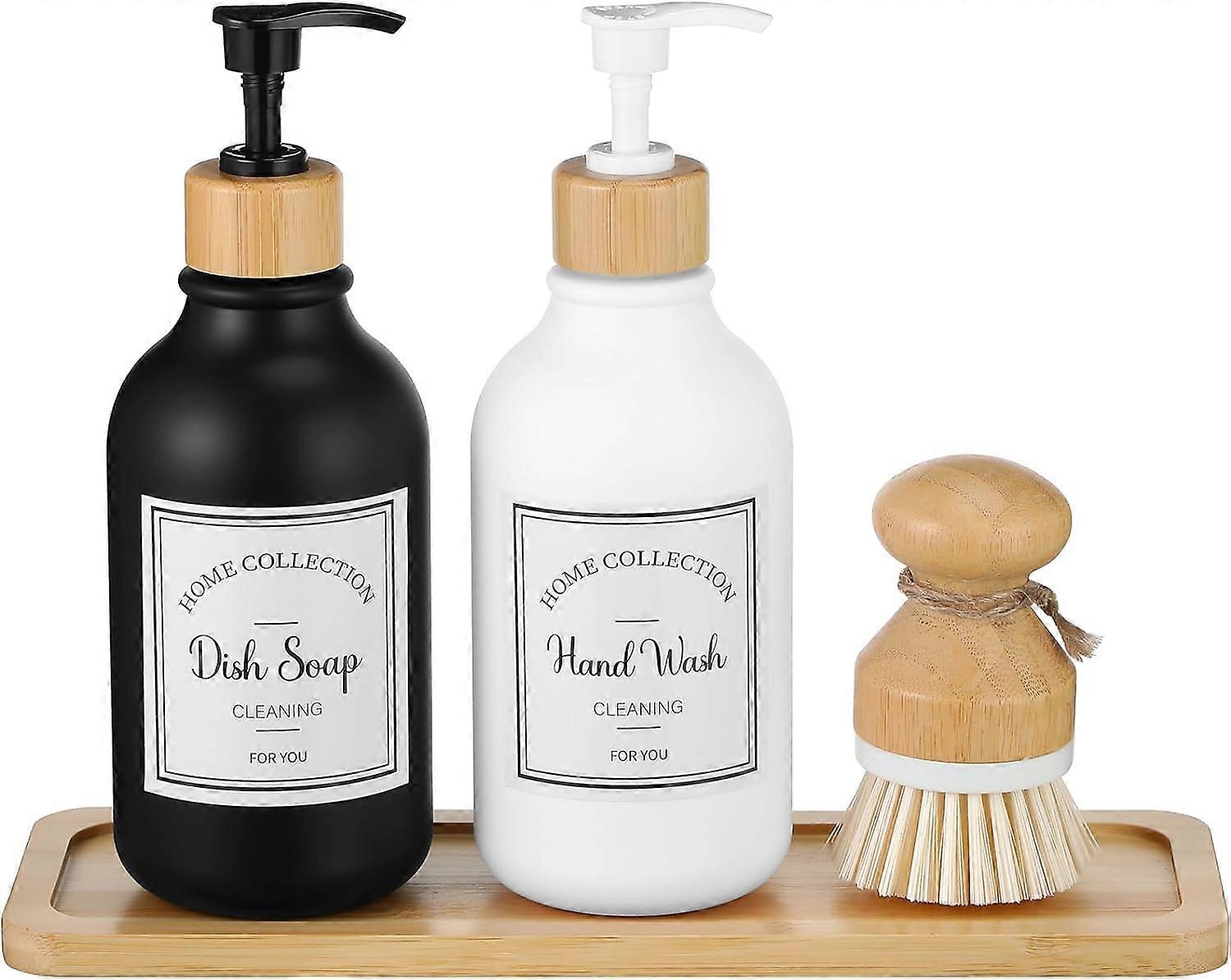4 Pieces Kitchen Dish Soap Dispenser Set with Pump Tray with Labels