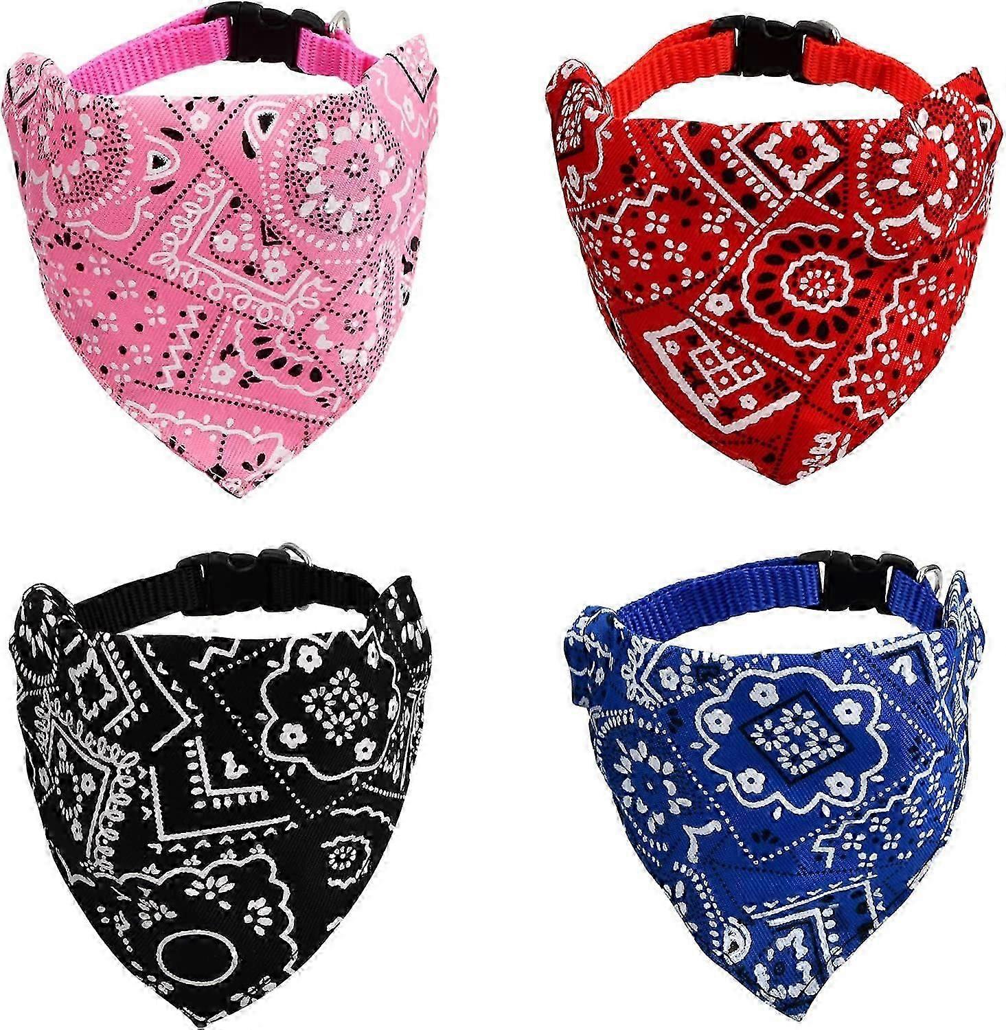 4Pcs Dog Bandanas, Fashion Dogs Bandana, Dog Bandana Collar, Triangle Dog Scarves Adjustable Dog Bibs(Red, Blue, Black, Pink) (L)