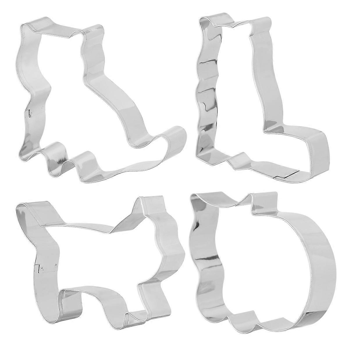 4pcs Cat Shaped Stainless Steel Cookie Stamps for Baking, Fondant Embossing & Party Decoration Non Stick & Easy Release