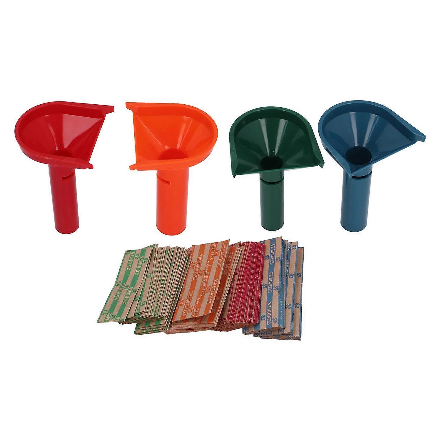 4Pcs Coin Counter Tube Plastic Multifunctional Coin Sorter Tube with 100 Bags for Banks Offices Rest