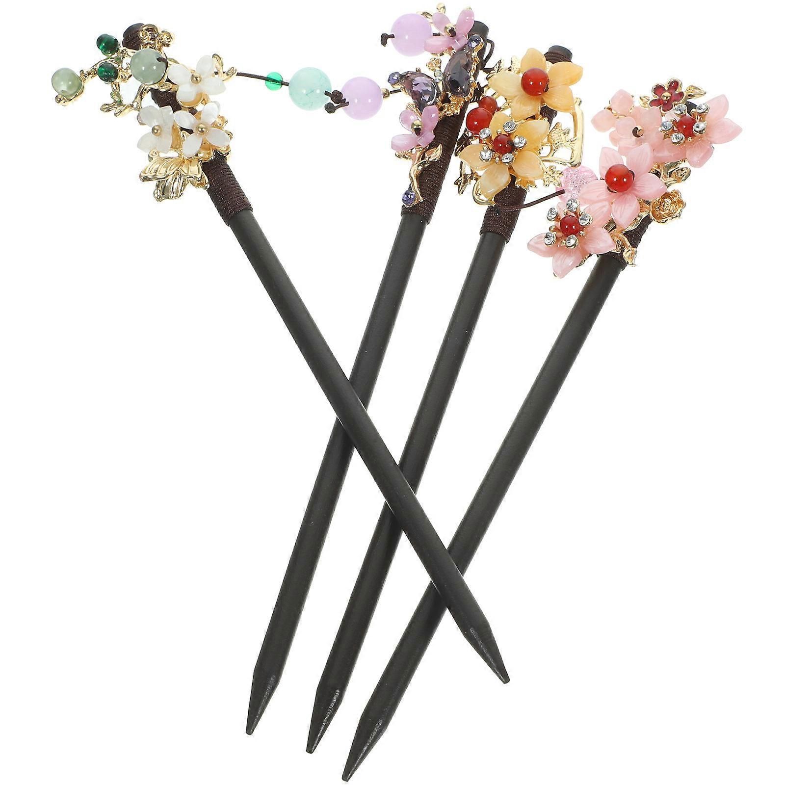 4pcs Vintage Floral Wooden Hair Chopsticks for Women, Elegant and Easy to Use
