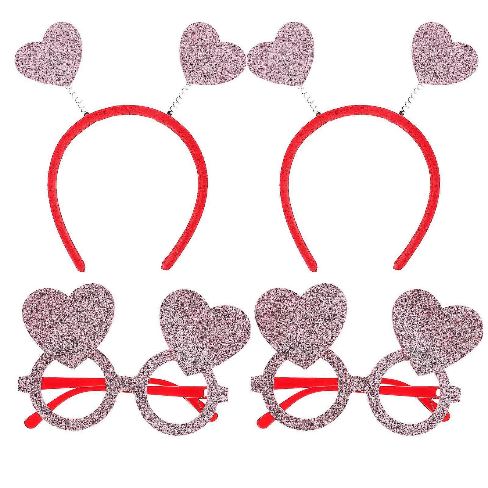 4pcs Valentine Heart Headbands Heart Glasses Valentine Party Costume Accessories