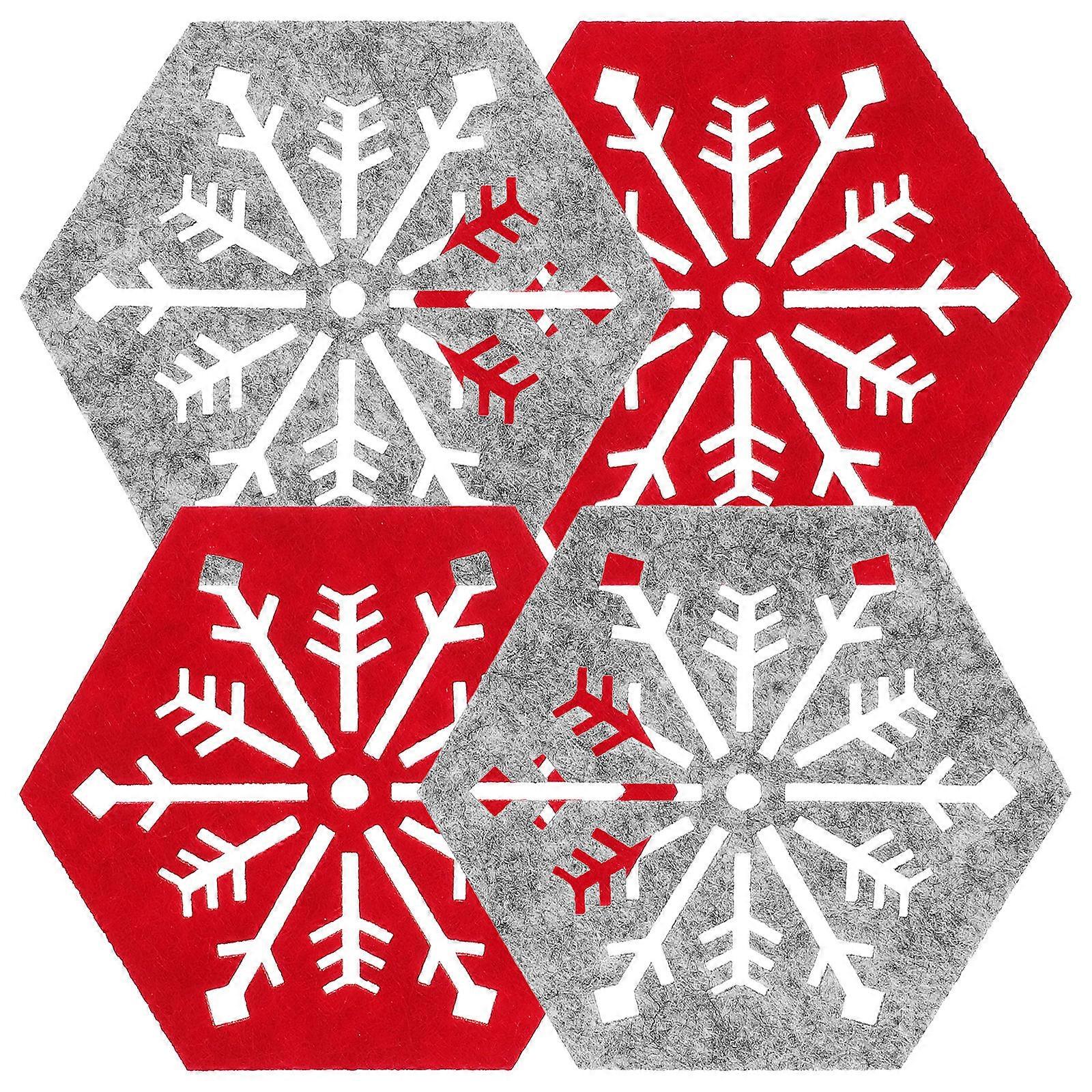4pcs Christmas Hexagon Snowflake Placemats, Skid Resistant Heat Insulation Mats for Dining Table, Party Decoration, Home and Restaurant Use
