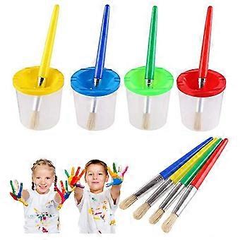 4pcs Paint Brushes and 4pcs No Spill Paint Cups with Lids for Kids Beginners