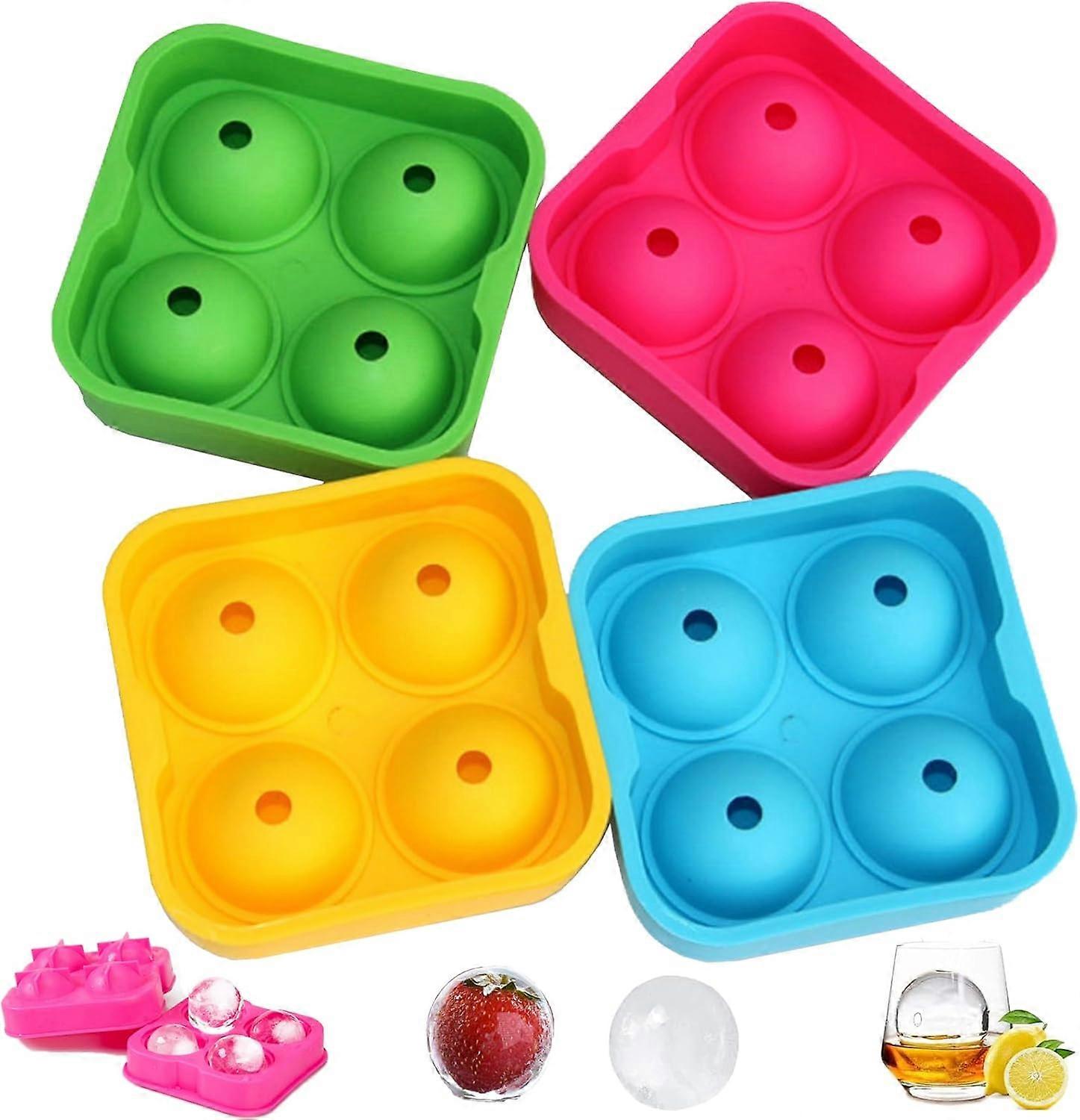 4 Pieces Round Ice Cube Mold, Plastic Ice Cube Molds with Lids, Round Ice Cube Tray, for Wine and Various Drinks, Four Colors, 12.5 x 12.5 x 5 cm Gree