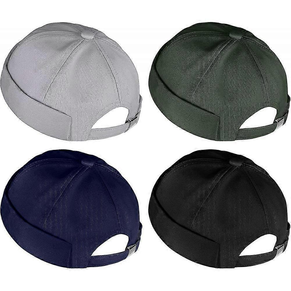 4 Pieces Brimless Hat Docker Cap Retro Cotton No Brim Hat Adjustable Rolled Cuff Brimless Cap BOZ