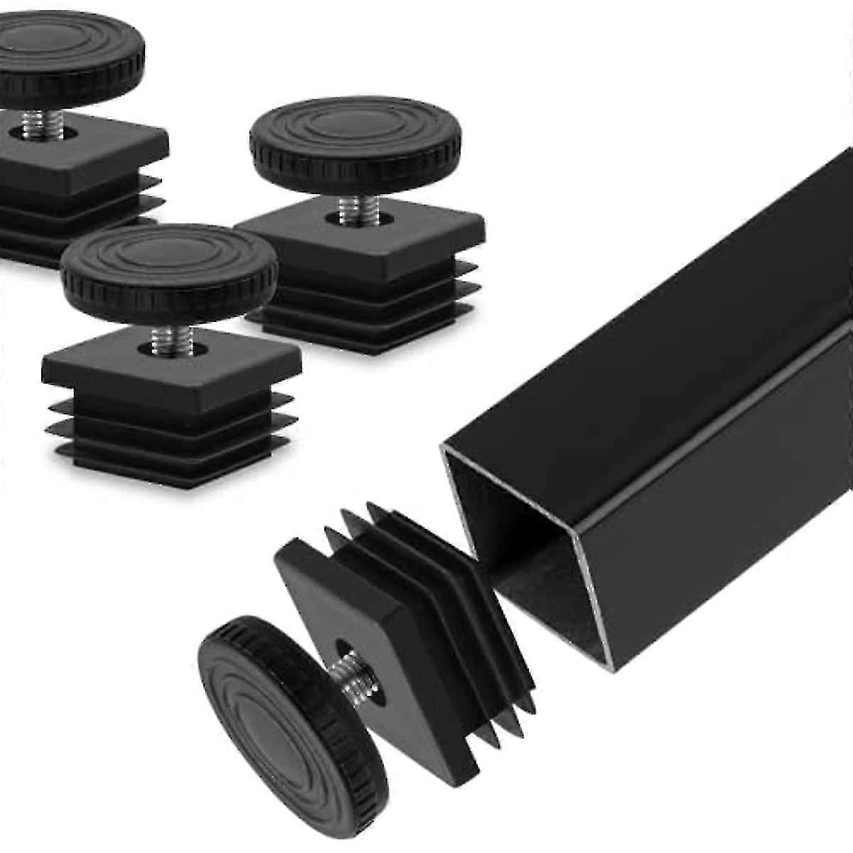 4pcs Square Adjustable Leveling Feet For Office Home Table Desk Chair, Square Tube Inserts Furniture Leveling Kit, 30mm X 30mm, Black
