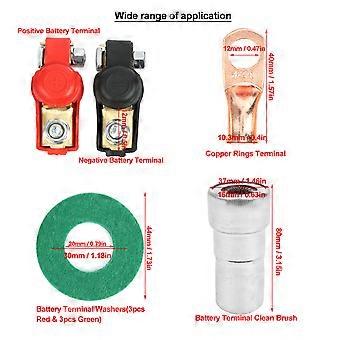 4pcs Car Battery Cable Terminal Clamps Connectors with 6pcs Copper Ring Negative and Positive Universal