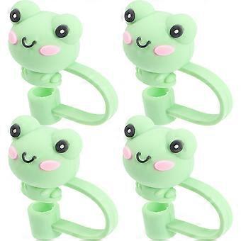 4PCS Cute Frog Silicone Straw Caps Reusable Covers for Drinking Straws, Adorable Dust Protectors for Beverages and Cups