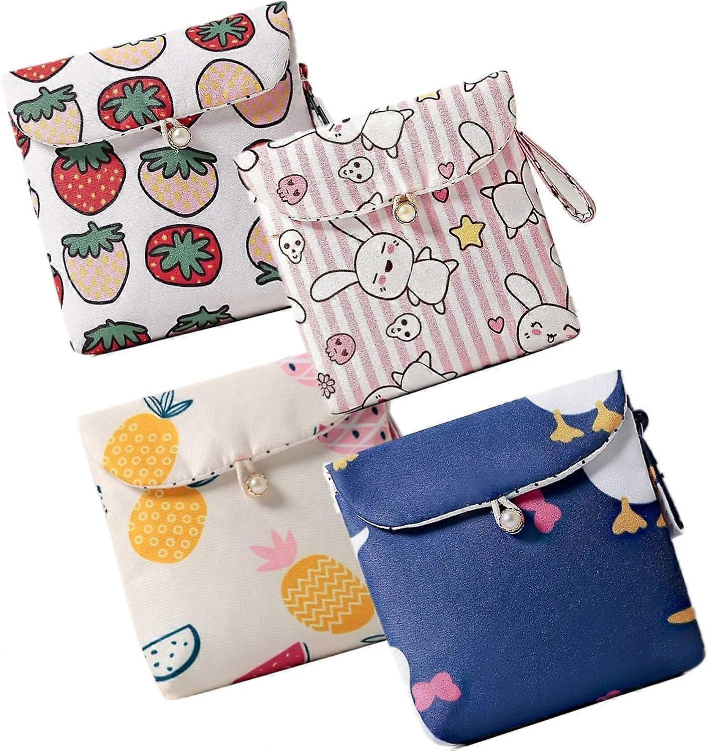 4 Pcs Cute Cotton Sanitary Napkins Bag, Menstrual Cup Pouch, Nursing Pad Holder,Washable