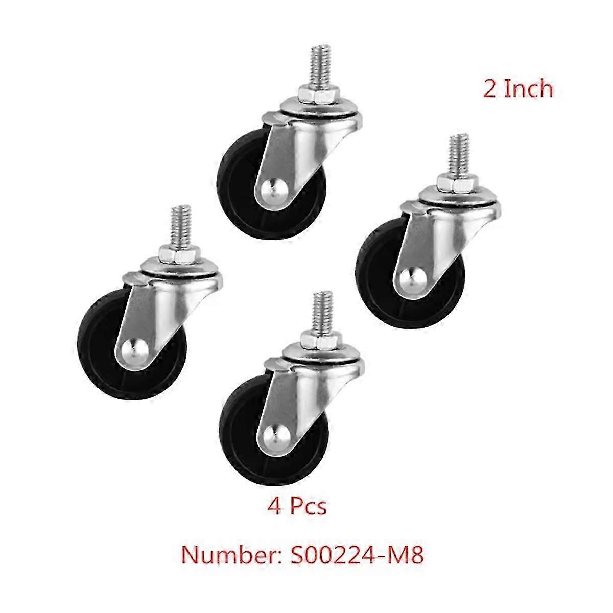 4 Pcs/Set 2-Inch Universal Caster Wheels, M8 Screw, Black PP, 50mm Diameter, Ideal for Furniture & Carts