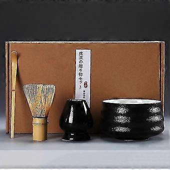 4 قطع / مجموعة مجموعة هدايا ماتشا التقليدية وعاء ماتشا سيراميك من الخيزران مع خفاقة - KC