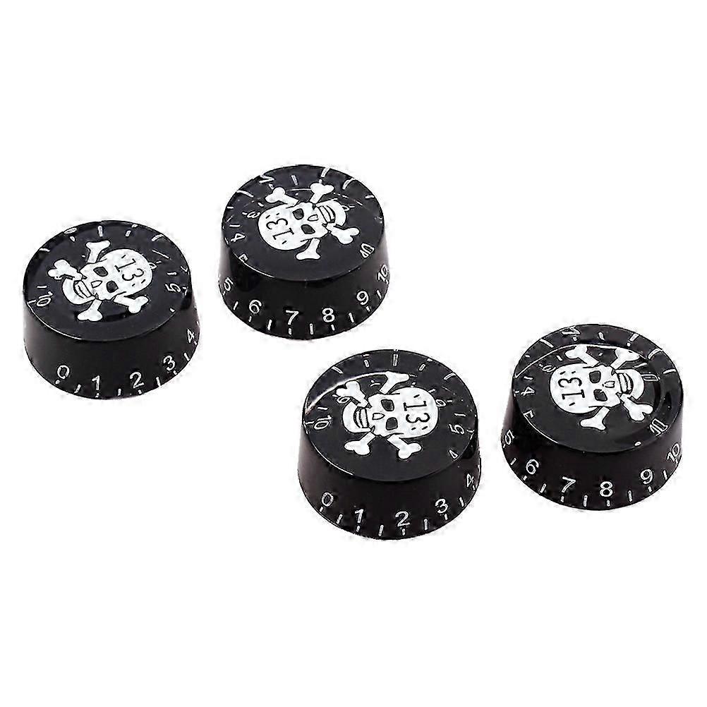 4 PCS/ Set Guitar Knobs Volume Tone Control Knobs Skull Pattern Rotary Knobs for LP Electric Guitar Parts Replacement (Black/ White Pattern)