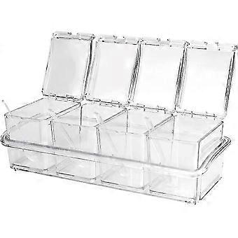 4 Piece Clear Seasoning Box, Acrylic Seasoning Box Set Seasoning Storage Container Clear Seasoning Rack Spice Pots Condiment Jars with Cover & Spoon f