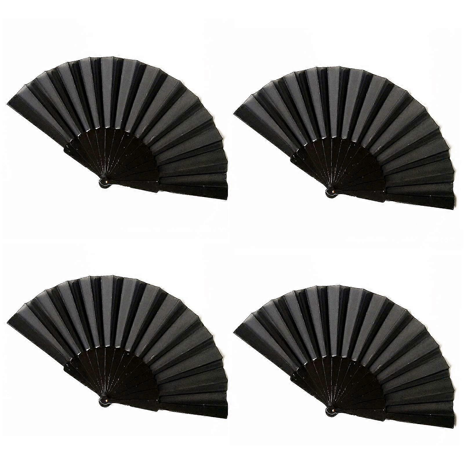 4 Pcs Black Folding Fan, Silk Folding Fan With Bamboo Handle, Tai Chi Folding Fan, Prop For Male/female Dance Performance