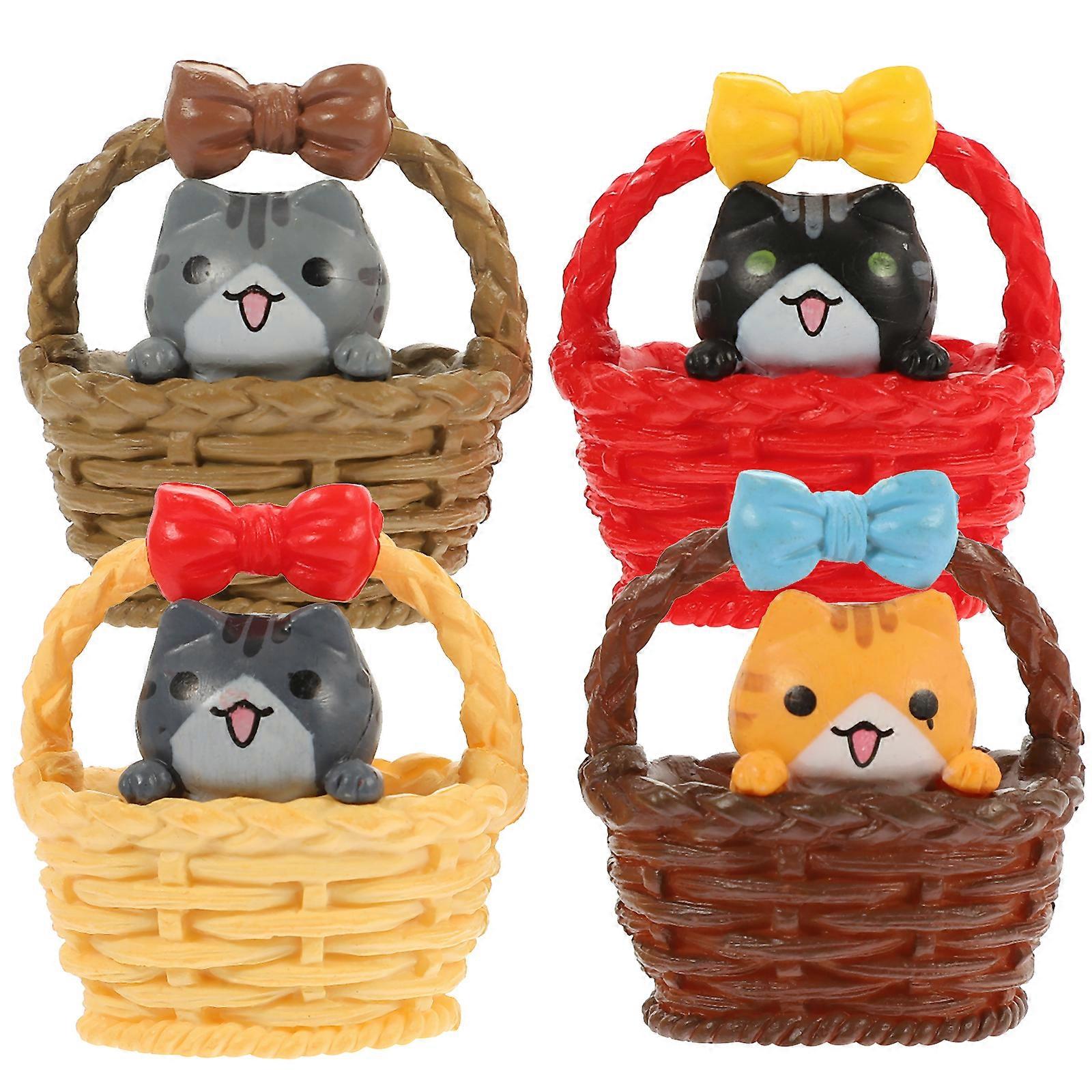 4pcs Miniature Cartoon Cat Ornament Creative Kitten In Basket Decoration Microlandscape Layout Prop