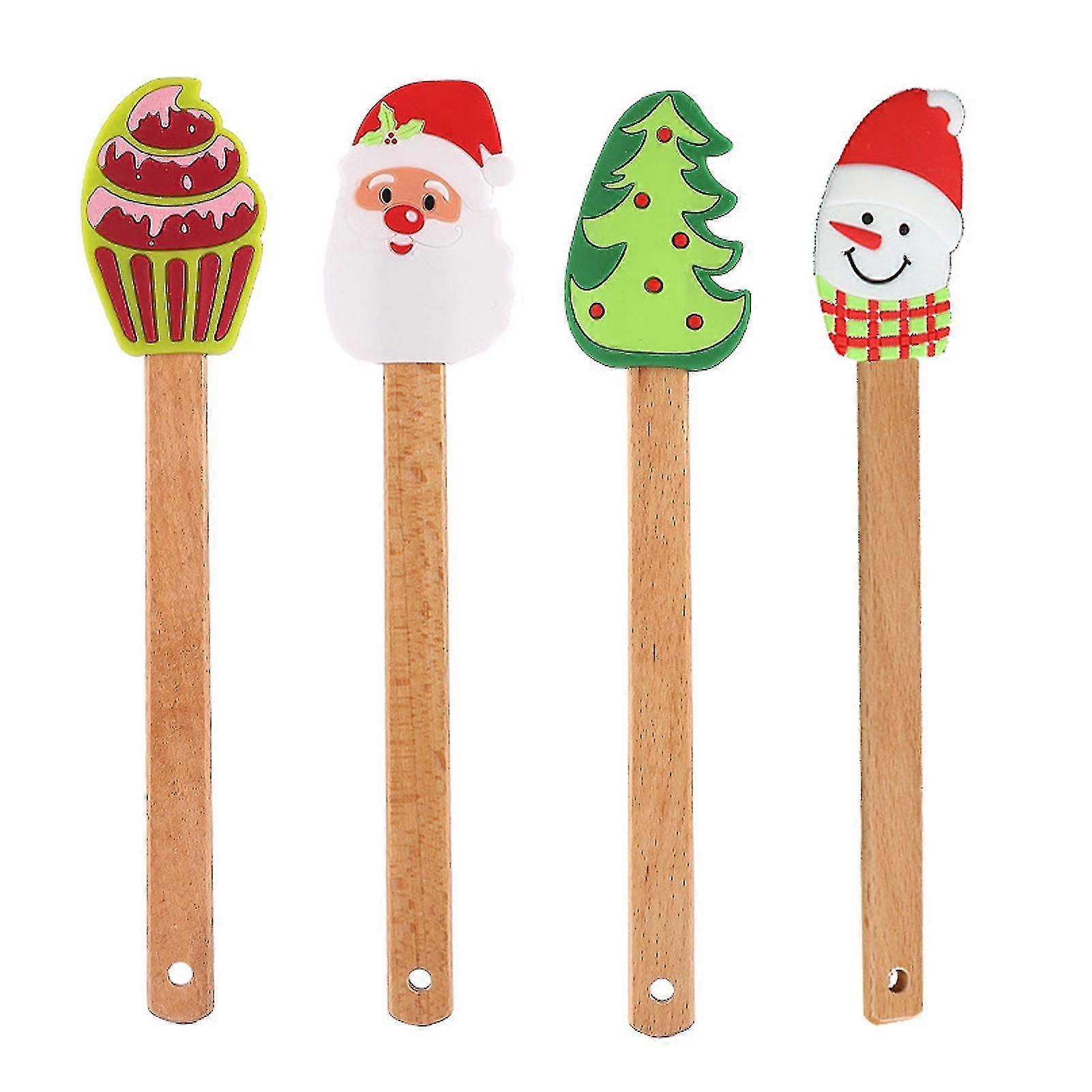 4pcs Kitchen For Baking Cooking Christmas Pattern Non Slip Silicone Spatula