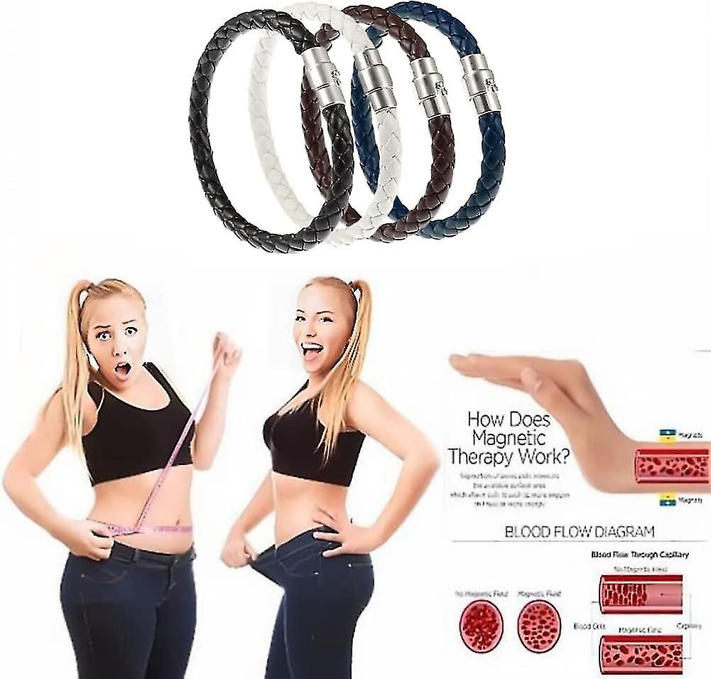 4 Pieces Leather Wristband,crainoc Titaniumion Osimium Bangle,magnetic Therapy Bracelet Lymphatic Drainage