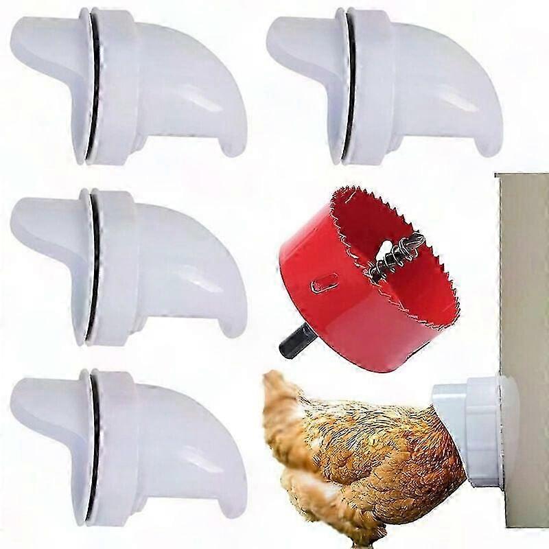 4pcs Automatic Chicken Feeder with 6 Ports & Hole Saw, Rainproof Waste-Free Poultry Feeder for Buckets Pails Boxes Troughs Zero Waste