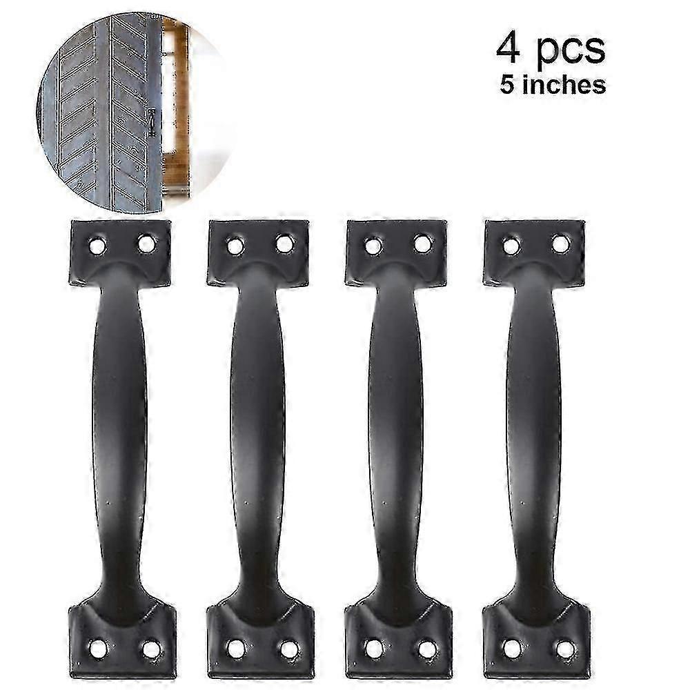 Cast Iron Door Handle Set: Heavy Duty Cast Iron; Traditional Hand Cast, Well Made Combined With Strong Materials, Rust Resistant And Corrosion Resistant And Pretty Strong For Years Of Use. Rustic Vintage Style: The classic look and rough metal surface details can be paired with many rustic and vintage styles; add a nostalgic and classic feel to your space when you install it on your door. Perfect size to match most of your furniture settings. Widely Used: Traditional vintage door handles are great for antique doors, barn doors, garden sheds, garage doors, wooden doors, french doors, fence doors, closet doors, sliding doors, wine cellars and more. Easy to Install and reuse: The package includes 4 heavy duty door handles and mounting screws, just drill 2 holes in the door panel with a properly sized drill bit, then install the door handle and tighten the screws. No special skills required for barn door handle installation. Size: The 3 inch gate handle has a total length of 75 mm and a width of 19 mm; 5 inch gate handle has a total length of 119 mm and a width of 29 mm.